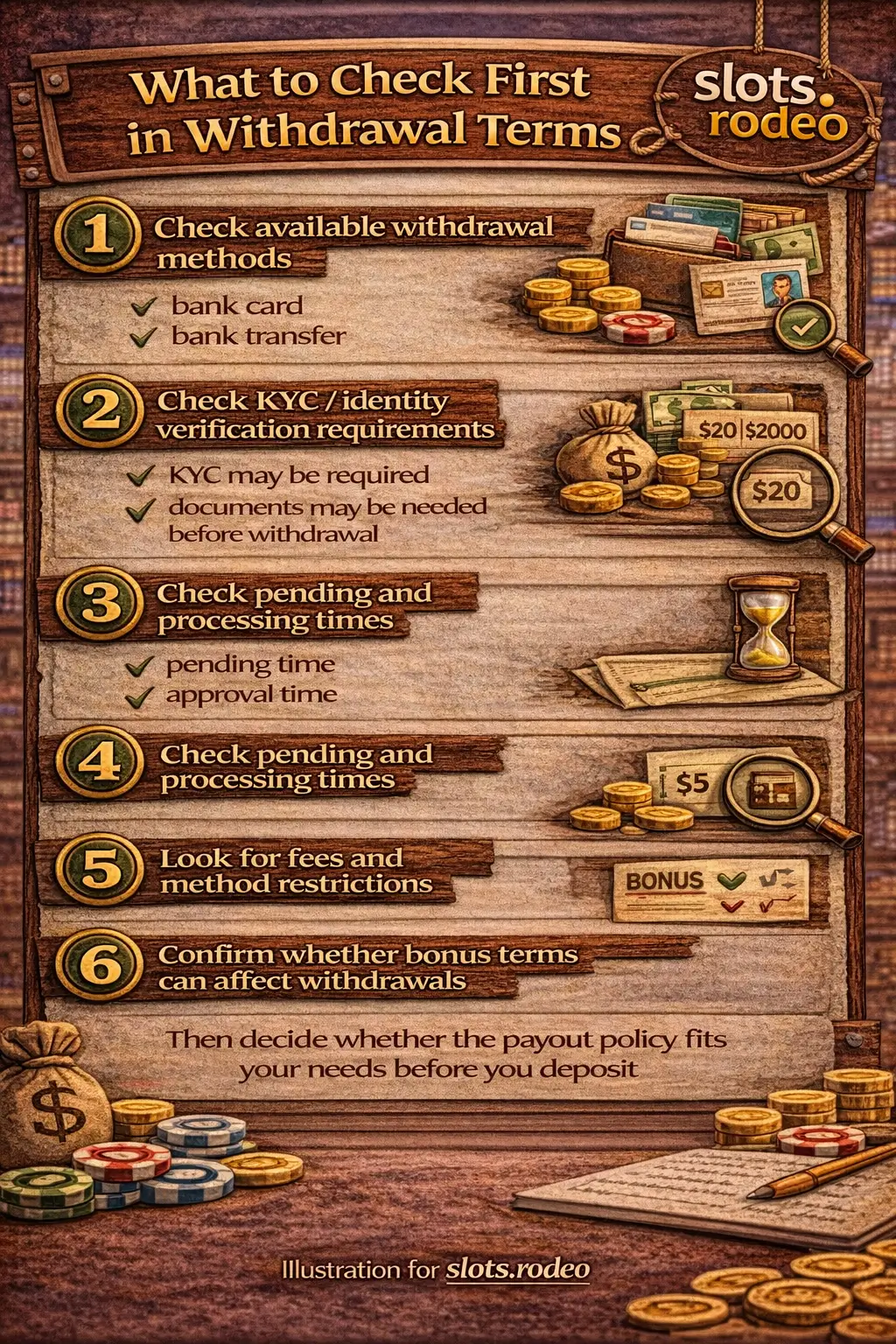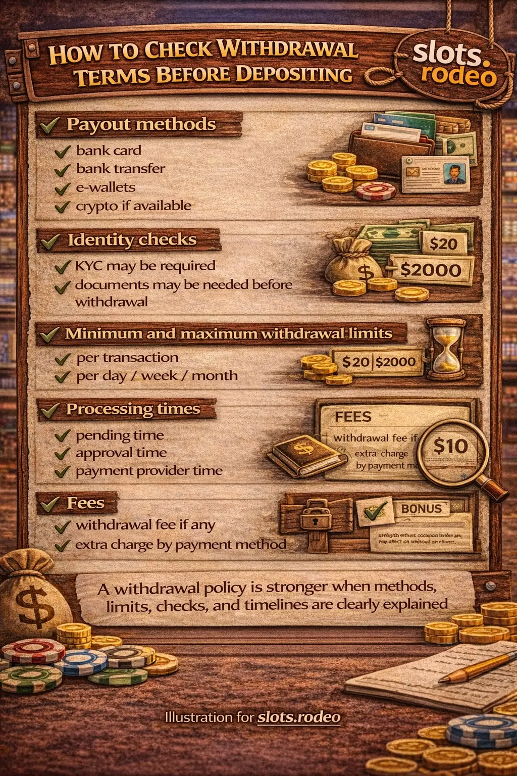 A good policy does not promise "instant withdrawals" and then quietly introduce major verification only after the first cashout request.