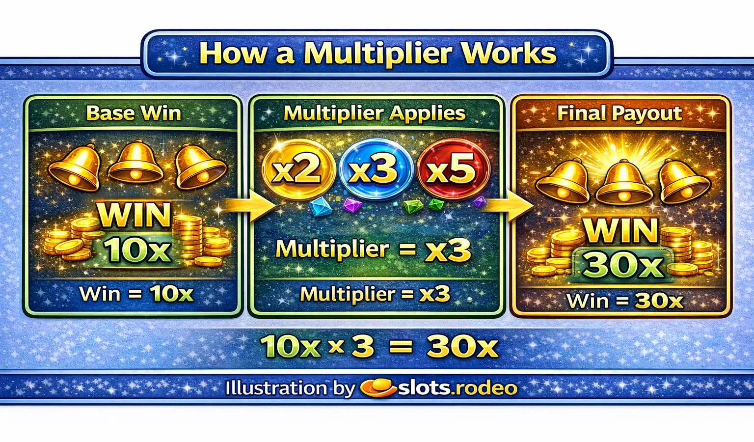 If a slot applies a 2x multiplier, it doubles the win. If it applies a 3x multiplier, it triples the win. The multiplier does not create a win by itself. It changes the size of a win that already exists, unless the game clearly states another rule.