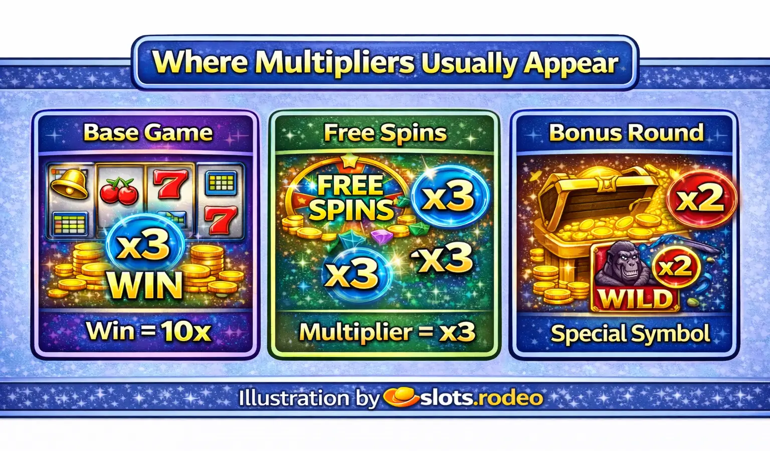 | Where the multiplier appears | Base game, free spins, wild, cascade, or bonus round |