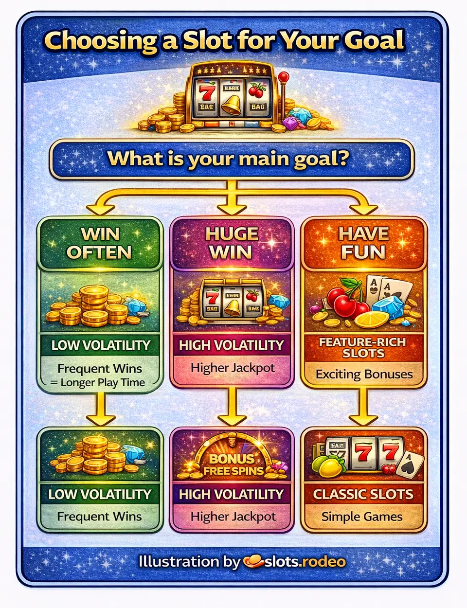 Slots don't reward "systems." They reward clarity and discipline: pick games that match your volatility preference, verify rules in the paytable, use RTP as a long-run comparison signal, and manage your session with budget and bet sizing. That approach doesn't promise results - but it makes your play more informed, controlled, and consistent.