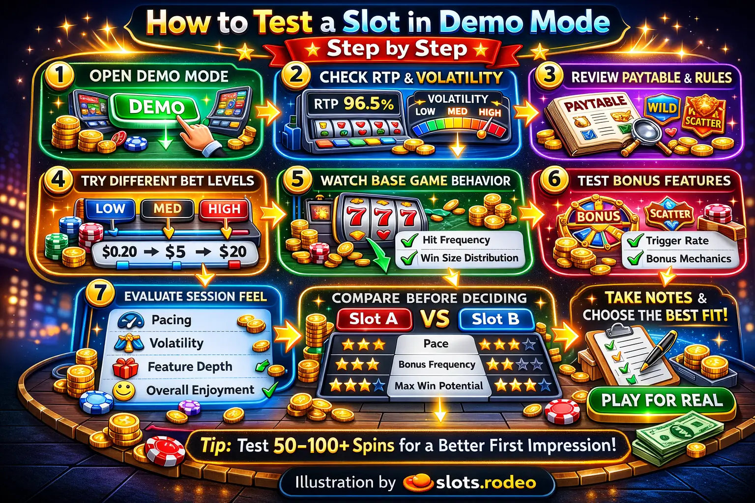 Demo mode is best for understanding the slot's design.