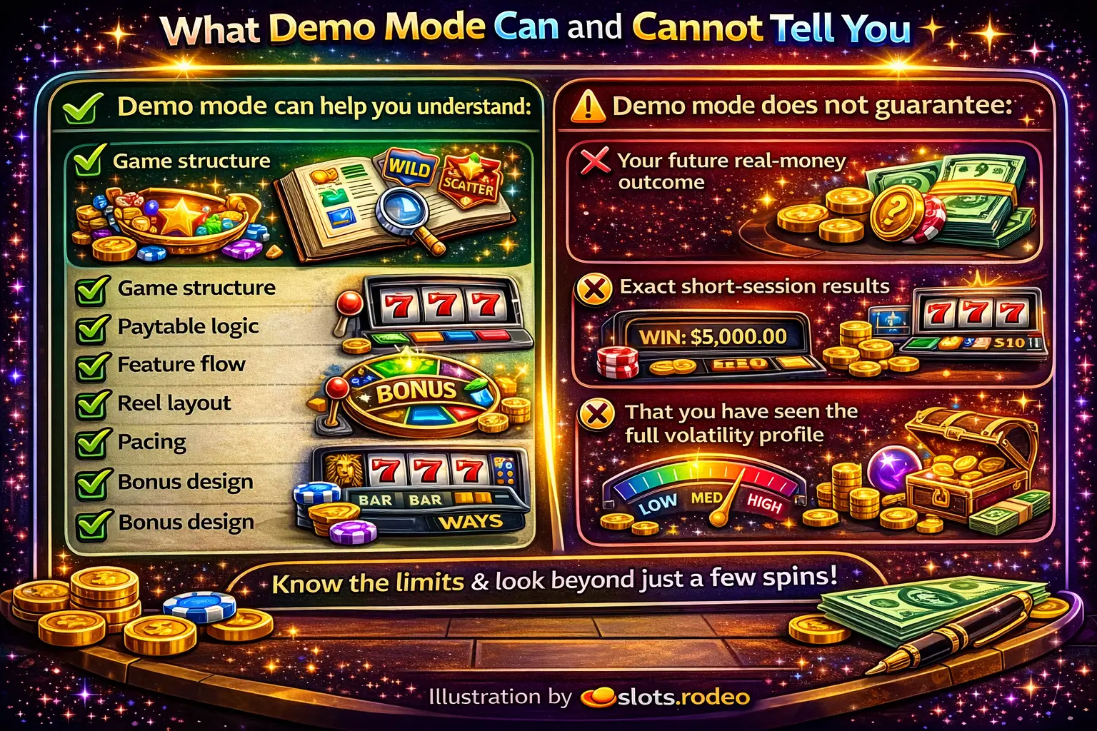 That makes demo mode useful for analysis, comparison, and simple slot literacy.