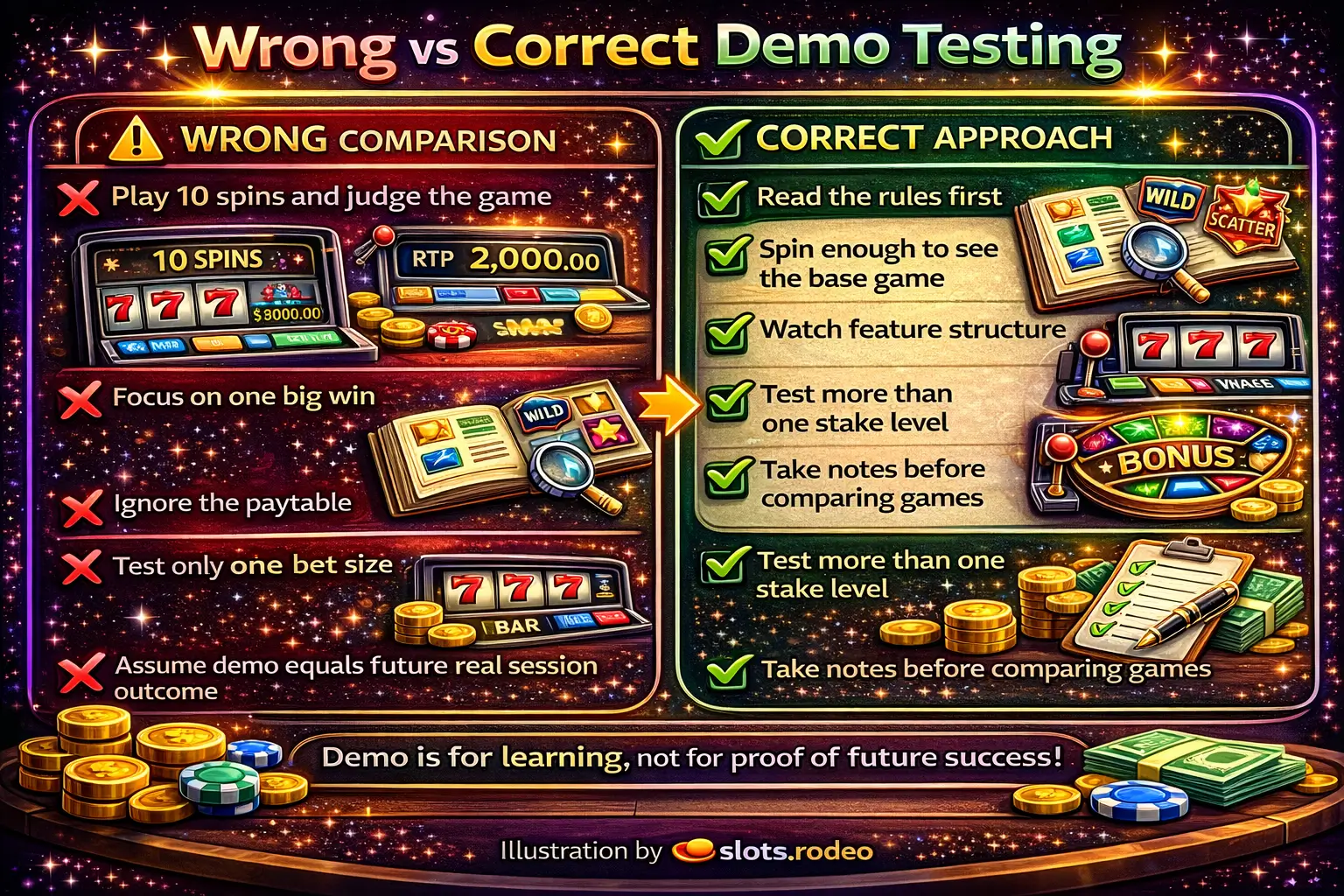Wrong way vs correct way to test a slot in demo mode